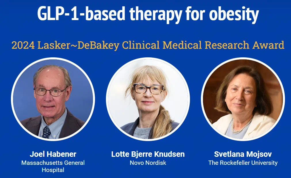 而本次临床医学研究奖,则授予了麻省总医院的Joel Habener博士、洛克菲勒大学的Svetlana Mojsov博士,以及诺和诺德的Lotte Bjerre Knudsen女士,以表彰他们发现并开发了GLP-1类药物。
